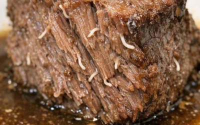 Wyjąłem pieczeń wołową z wolnowaru i zobaczyłem te dziwne, białe, nitkowate rzeczy wystające z mięsa. Wyglądają jak małe robaki albo pasożyty. Czy mięso jest zarażone?
