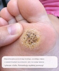 Jako rodzic, obserwowanie cierpienia dziecka może być przygnębiające, zwłaszcza gdy dyskomfort grozi zrujnowaniem czegoś tak ważnego, jak recital taneczny. Jeśli Twoja córka utyka i zauważysz twardą, szorstką plamę z drobnymi czarnymi kropkami na podeszwie jej stopy, zrozumiałe jest, że się martwisz. Ponieważ jej recital odbędzie się jutro, Twoim celem jest zapewnienie jej komfortu, aby mogła nadal uczestniczyć w zajęciach.