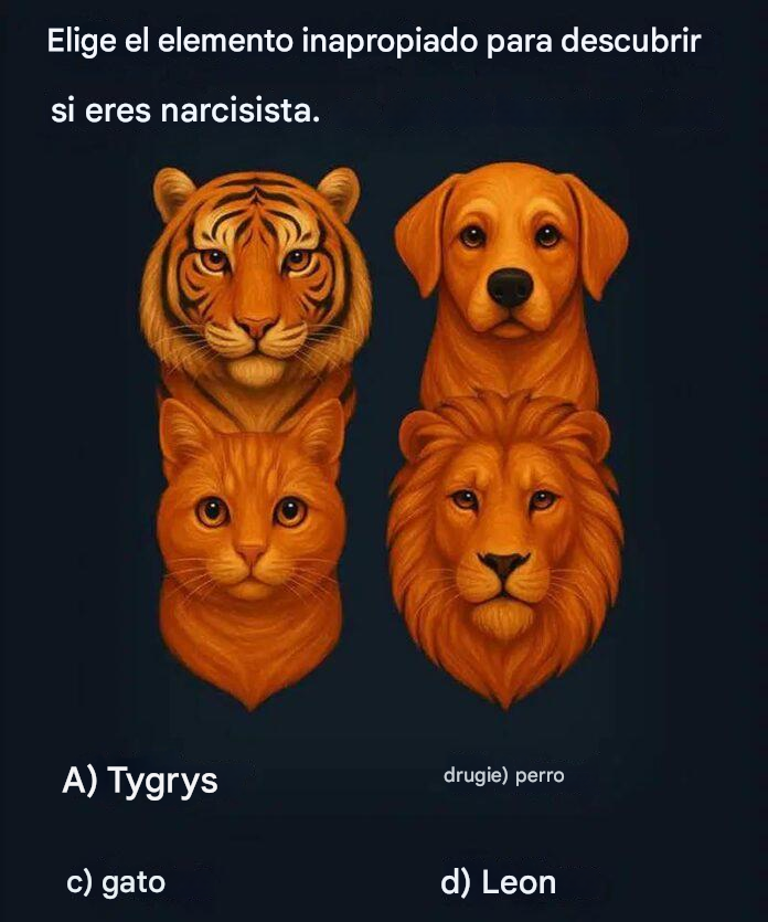Na pierwszy rzut oka ten krótki quiz wygląda jak prosta zagadka. Pokazywane są cztery zwierzęta: tygrys, pies, kot i lew, i zadawane jest proste pytanie: Które z nich nie pasuje?